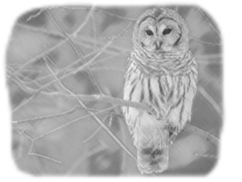 Der kleine große Bär schaute auf zu dem Ast der sich in einiger Höhe direkt über ihm befand und konnte mit ein klein wenig Mühe die Eule erkennen, die dort, durch ihr Fellkleid gut getarnt, mit großen Augen auf ihn herab schaute.